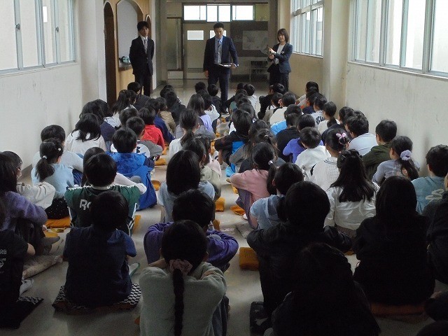 始業式の後は、学年集会がありました。よいスタートが切れるように、それぞれの学年でまとまってお話を聞きました。ここでもよい姿勢で、話をする先生の方をしっかり見ながら聞く姿がとても立派でした。