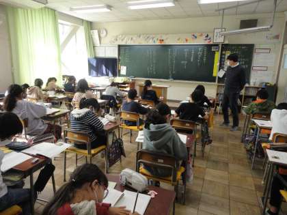 4年生。国語の説明文を元に、要約文を書く学習をしています。文字数をなるべく減らして簡潔にまとめるには、どうしたらよいか考えていました。