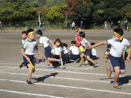 バトンタッチを上手にできるように意識して、力いっぱい走っていました。