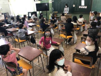 新学期が始まりました。2年生2クラスの1日目の学活の様子です。
