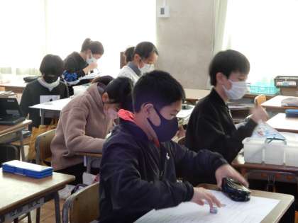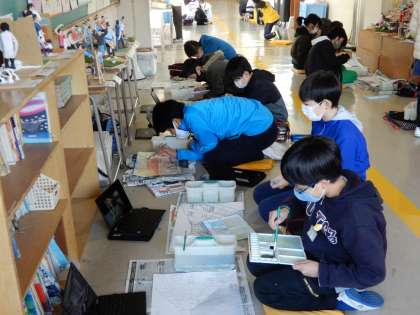 Chromebookの画像も参考にして、校舎内の絵を描きました。