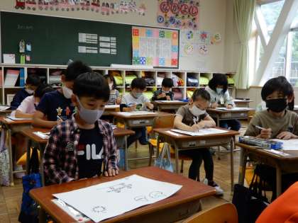 楽しかった遠足の思い出を絵に描きました。