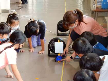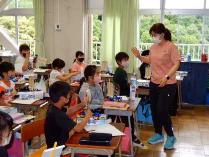 理科の授業では、教室と廊下で実験の説明を聞きました。