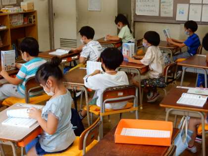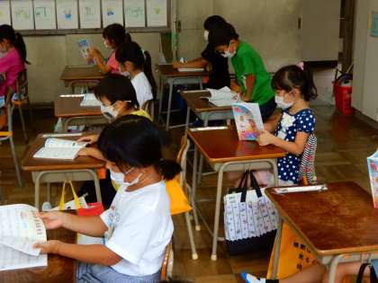 音楽の授業では、歌集を開き、南の島もカメハメハ大王を歌いました。