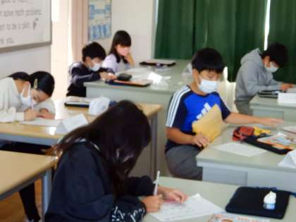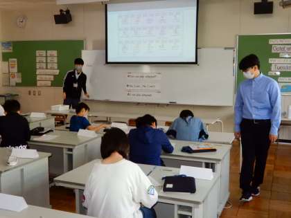 英語の授業では、プリントの説明を聞き、集中して取り組みました。