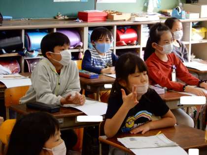 道徳の授業では、先生の範読をしっかりと聞きました。