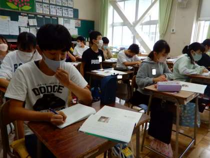 国語の授業では先生から出された課題を、それぞれ考えていました。