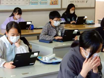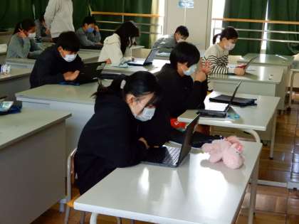 英語の授業では、英語で流れる動画を真剣に視聴しました。