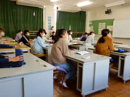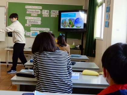 英語の授業では、パラグライダーについてのALTの説明をしっかりと聞きました。