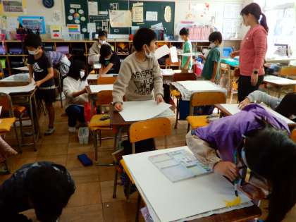 「モチモチの木」の絵に取り組んでいます。