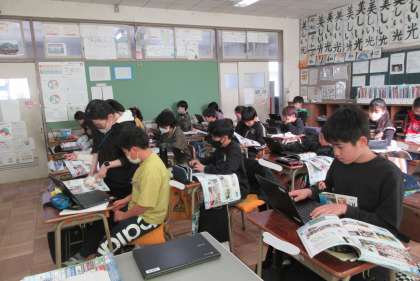 今日は「集めた情報をどうやってニュース番組にしているのか」という学習問題を解くために、タブレットや資料集などをつかって調べていました。