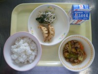 9月4日の給食は、鶏肉とじゃがいもの揚げ煮、はるさめのすまし汁、のりふりかけで...