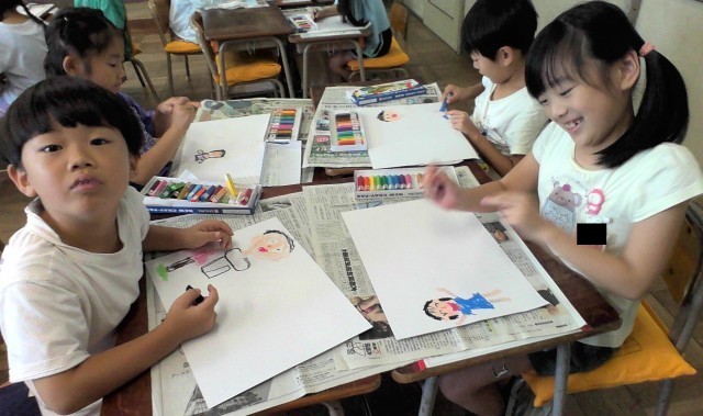 1・2時間目の図工では、「せんせい あのね」で夏休みの思い出を絵で表現しました。夏祭りにプール...様々な素敵な思い出を友達と話しながら、楽しそうに絵を仕上げていきました。また、作品に題名を付けることにも挑戦してみました!