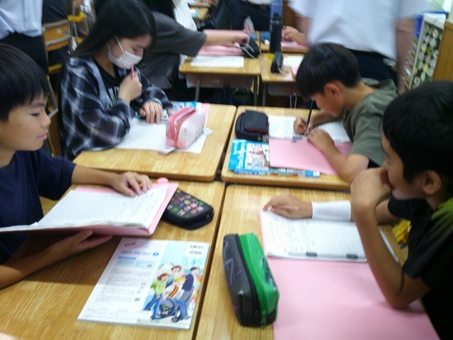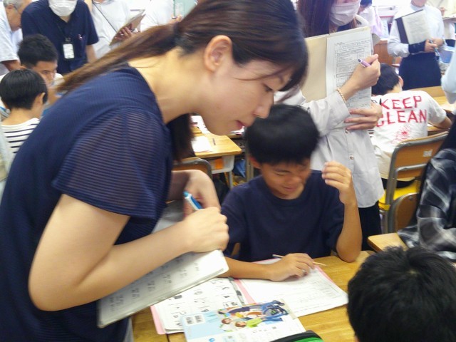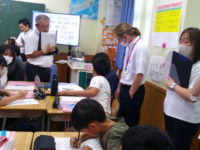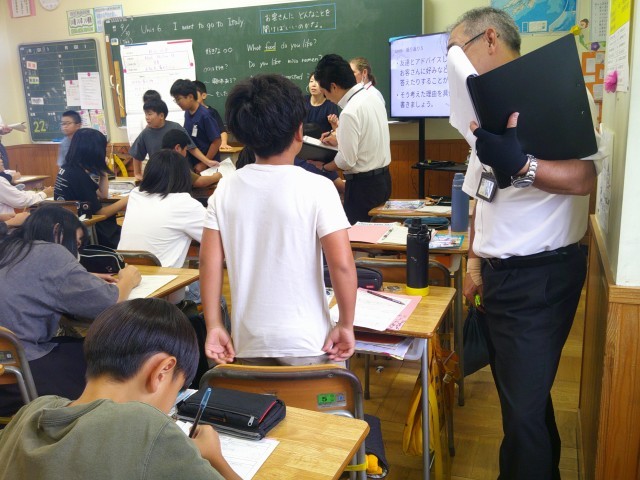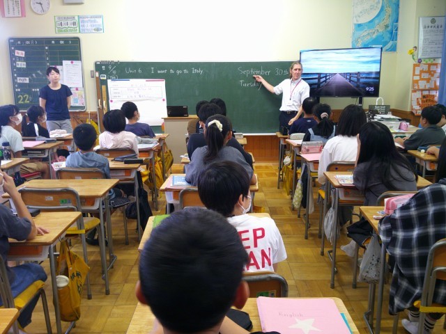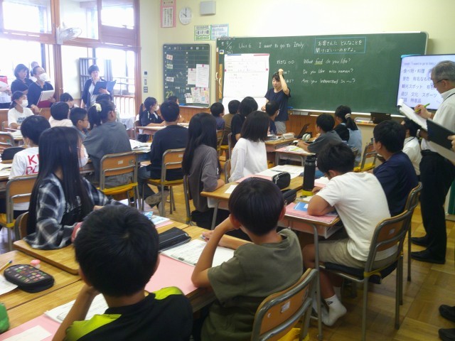 今日の2時間目、6年3組で英語の研究授業が行われました。沼津市教育委員会からお客様を迎え、門池小の先生方が授業について研修しました。
