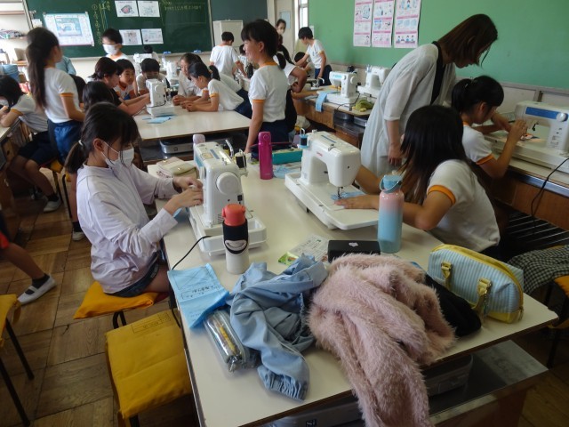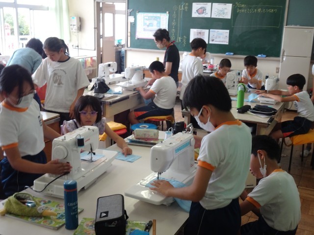 5年生のミシンの学習が始まりました。ミシンボランティアの方が子供たちに丁寧に教えてくださっています。