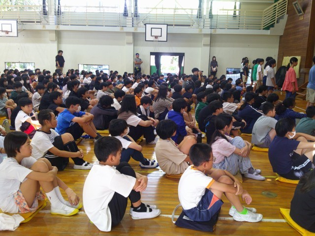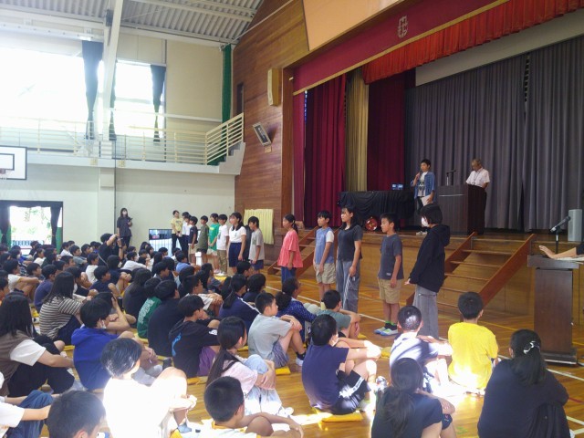 後期の委員会の委員長と、学級委員の任命式が昼休みに行われました。5・6年生は体育館に集まり、1~4年生は教室から中継を見ながら参加しました。名前を呼ばれると、やる気に満ちあふれた、大きな声で返事をしていました。
