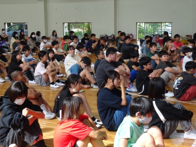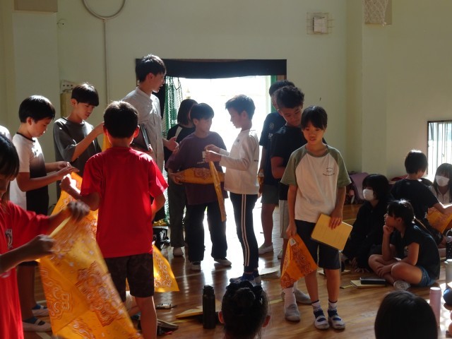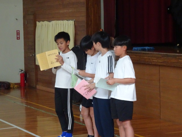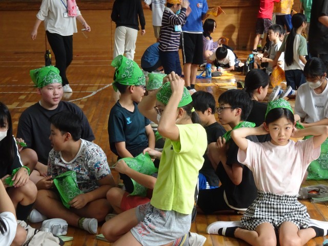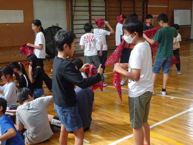 学年の目標、クラスの目標を確認し、各クラスカラーのバンダナが配られました。
