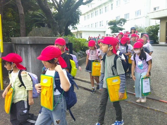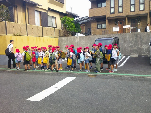 朝8時30分に社会科見学へ出発しました。門池公園までは、歩いていきました。