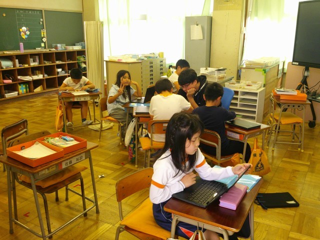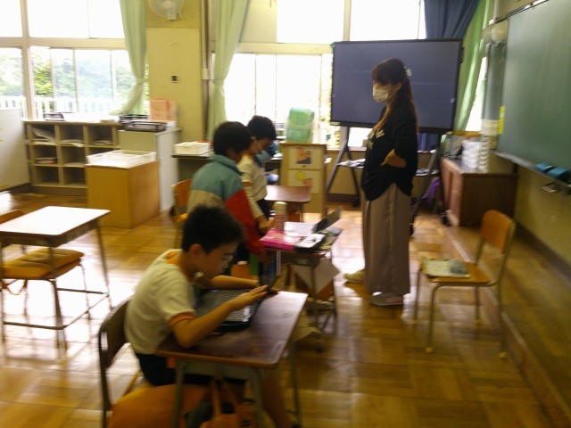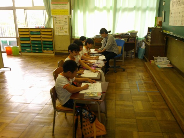7組の学習の様子です。学年に応じて一緒に音読をしたり、自分で計算をしたり、自分のペースで学習を進めていました。