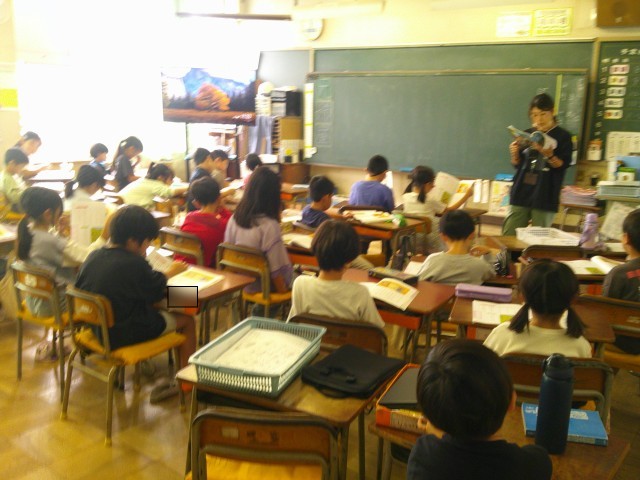 今日の4時間目は、道徳の授業でした。担任の先生が交代で授業をし、そのまま給食まで、その教室で食べていました。