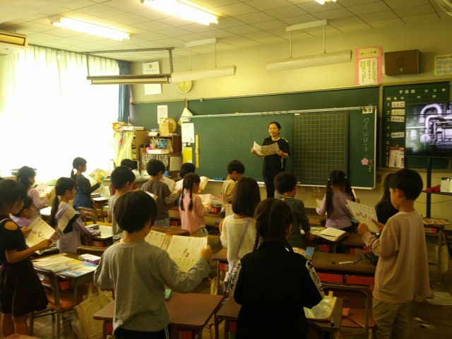 今日の4時間目です。時計の読み方を練習したり、回文を読み上げたり、楽しみながら学習を進めていました。