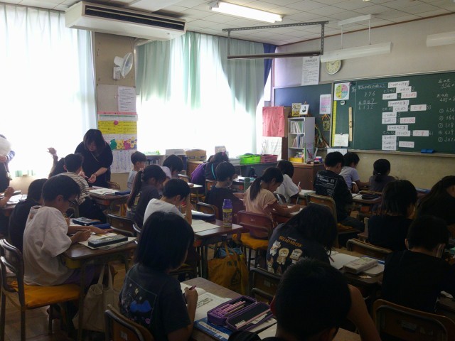 3年生は1組、3組は道徳の授業、2組は算数、5組は国語の授業でした。教室後ろのお家の人達に見せようと、集中して学習する姿が見られました。