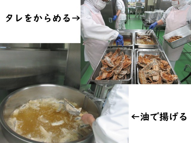 写真は、秋刀魚のかば焼きを作っている様子です。