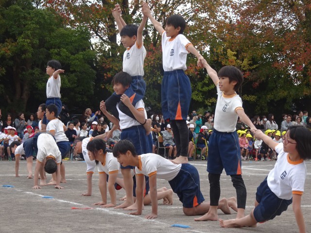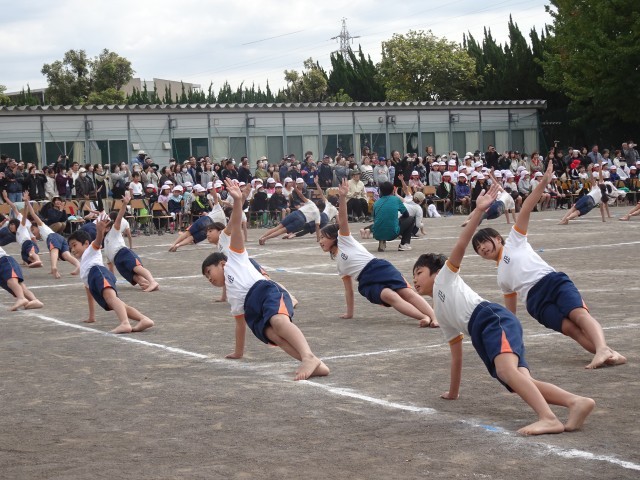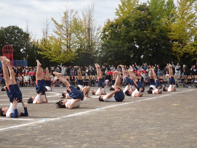 5年生の表現「つなげ 成長の きせき」です。練習を積み重ね、全員で技をつくりあげました。