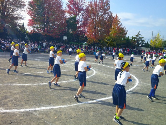 いたずら大好きスティッチのように、かっこよく、かわいく踊った1年生のダンスです。すてきなバンダナと花の腕輪を付けて、笑顔でポーズを決めました。