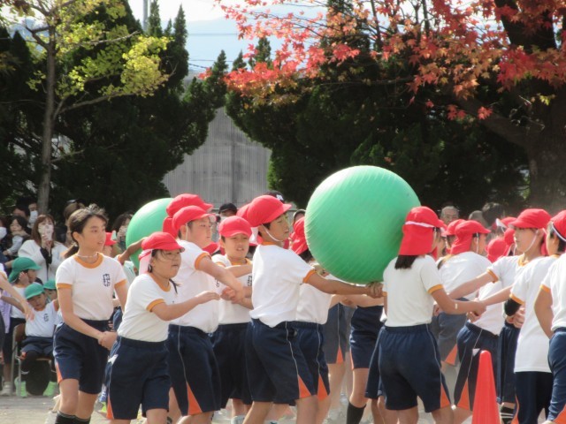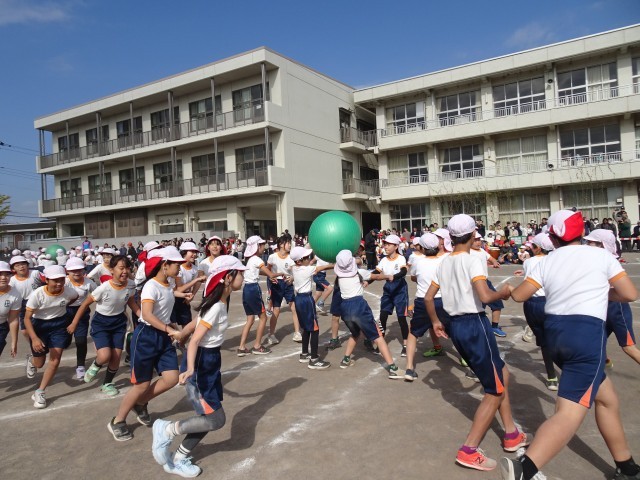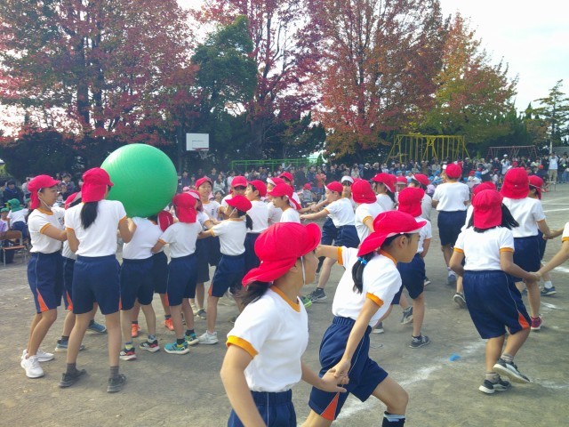 5年生の団体競技です。休み時間にクラスのみんなで休み時間に外にでて練習をしたり、作戦会議をしたりと、この3週間頑張っていました。本番の今日、各クラス声を出し合い、協力してボールをつなげていたので、全クラス過去最高タイムでした。