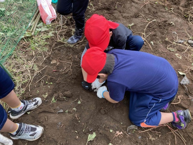 畑の深くまで掘り、一生懸命さつまいもを探しました。