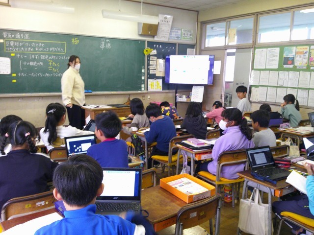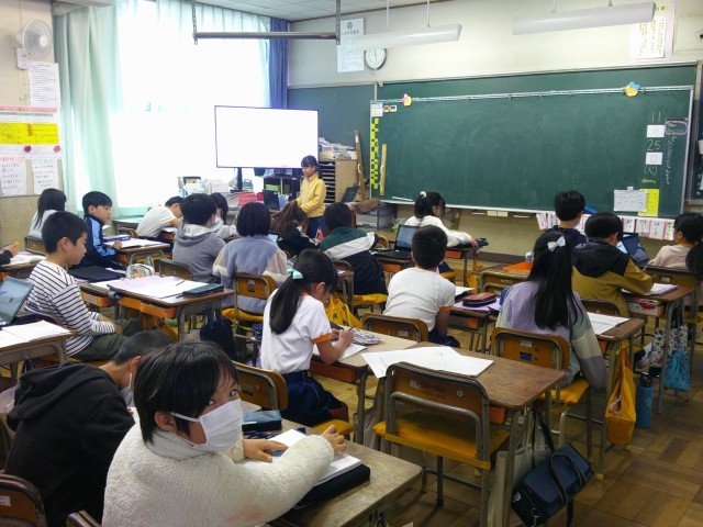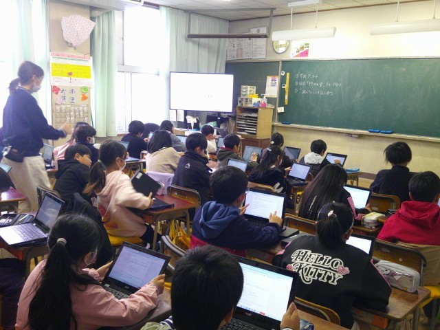 今日の4時間目です。Chromebookを活用して、総合学習の発表をしたり(5組)理科の学習ではロイロノートを使ったり(1組)、自分達の学びを広げていました。