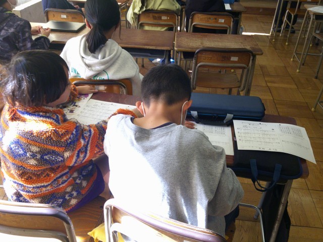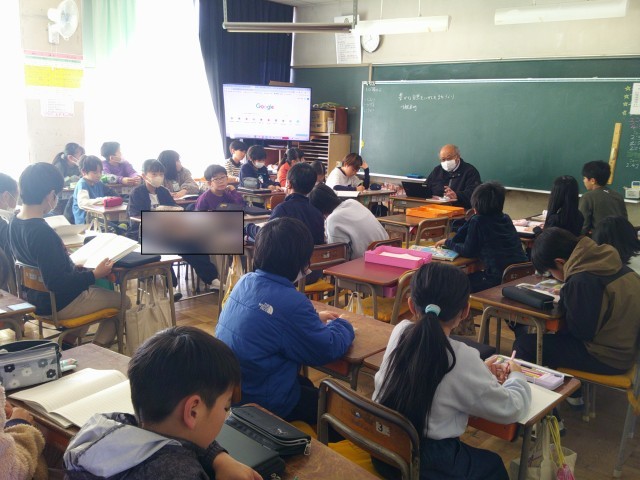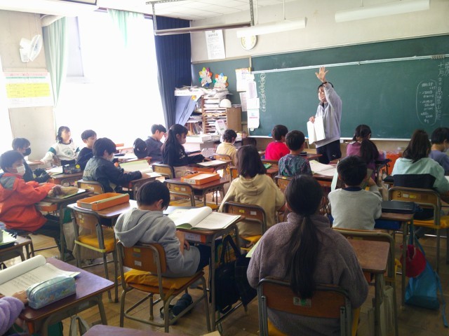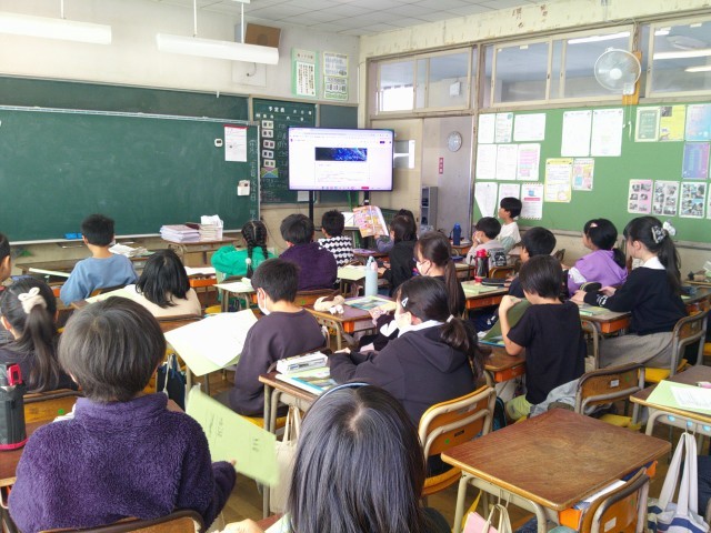 4年生の授業の様子です。社会で静岡県のことを学んだり、総合学習で「江原素六先生」のことをまとめたり、音楽で「とんび」の歌詞に注目したりしていました。