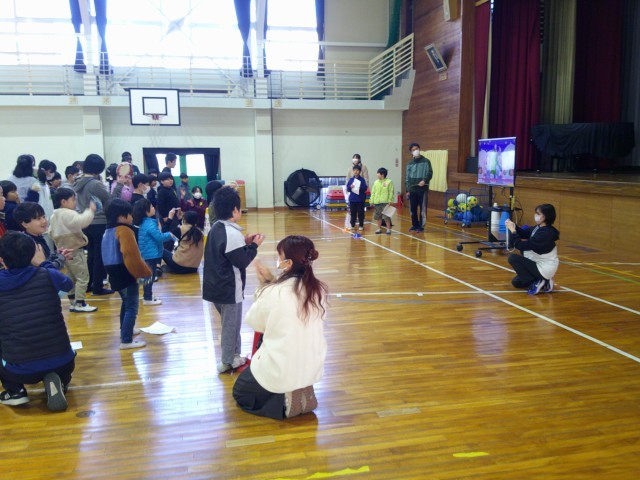 今日は特別支援学級の四校交流会でした。他の学校のお友達と仲良くなるために、音楽に合わせて歌ったり、自己紹介ゲームをしたり、体育館いっぱいを使って、交流会を楽しんでいました。