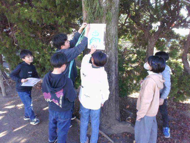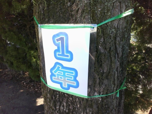 学年ごとの集合場所を示す札の貼り替え作業を