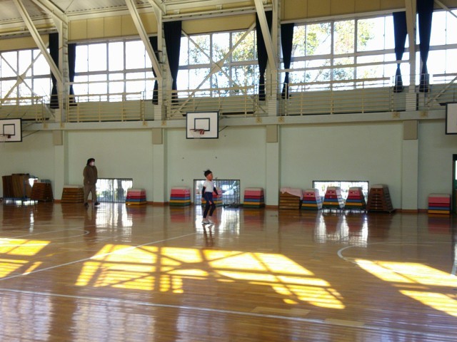 20分休みを使って、体育館でシャトルランに取り組んでいます。体育委員会の企画で、寒さに負けず、クラスごとに挑戦しています。