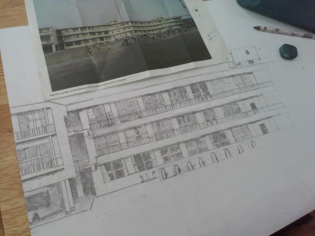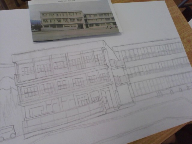 図画工作で「お世話になっている校舎」