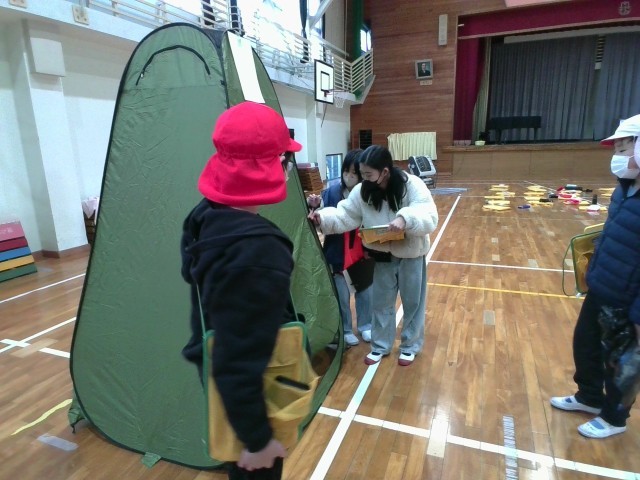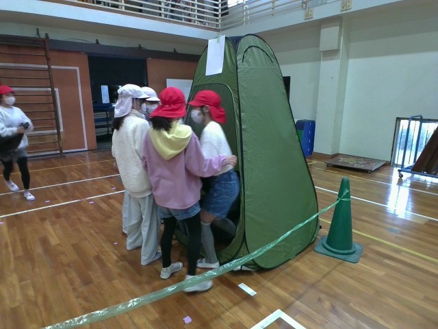 5年生の防災講座の様子です。講師の先生をお招きし、避難所のトイレの使い方について学習しました。