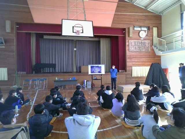 6年生の総合的な学習の時間の様子です。明電舎さんのお話を聞きながら、もしものときに備えて自分にできることを考えました。
