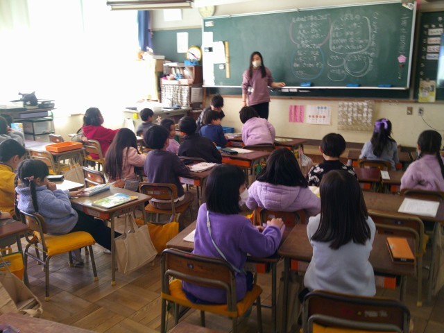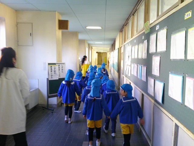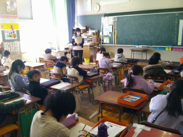 今日の3時間めに、4月から1年生になる保育園の友達が学校の様子を見学に来ました。1年生もすっかりお兄さん、お姉さんになり、保育園の友達にお手本として、授業の様子を見せていました。