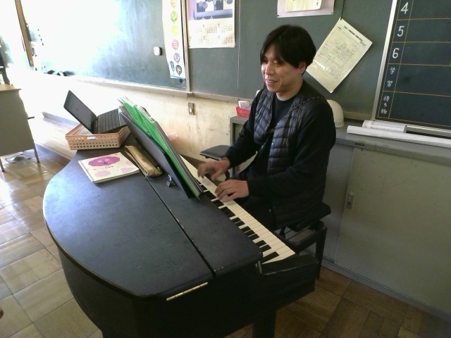 4年4組担任による美しいピアノ伴奏が聴こえてきました。