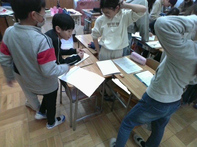 明日の5年生主催のたてわり活動に向けての準備をしている様子です。