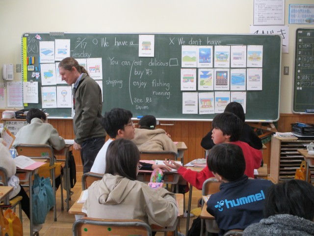 今日は、「We have~.」「We don't have~.」を使って門池校区にある物や、ない物を表現しました。更に、楽しめることやできることをクラスで共有して、英作文に挑戦しました。