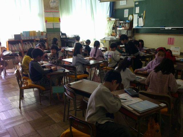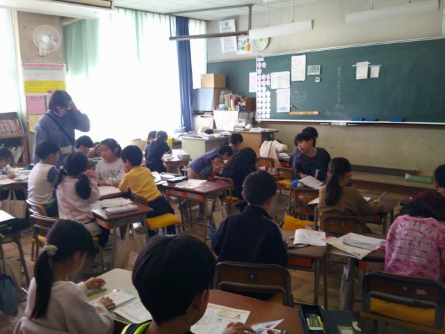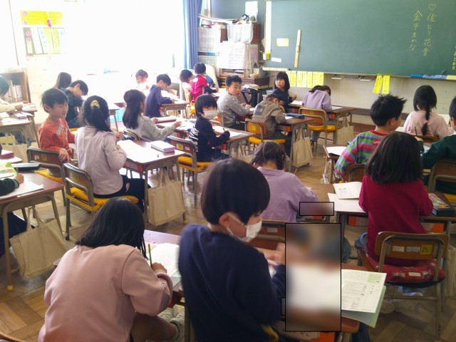 1年生の5時間目です。友達と交流して学びを深めたり、新たな発見をしたり、自分の考えと比較したり、2年生に向かっています。