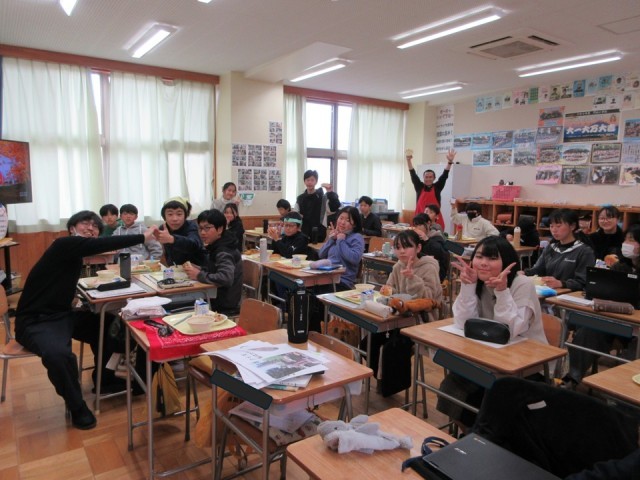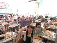 写真は、楽しく給食を食べている6年生の給食時間です。