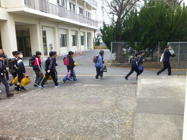 今日は、5・6時間目を使って、中学校の入学説明会が行われました。早めに給食を食べて、出発していく6年生です。