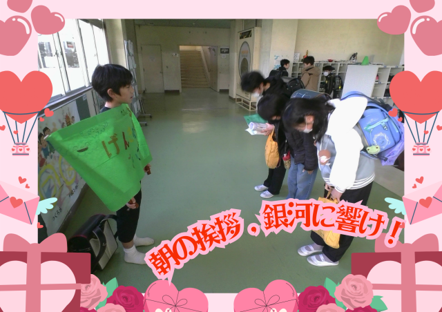 🌅 5年生「朝の挨拶運動」 2/26(木)