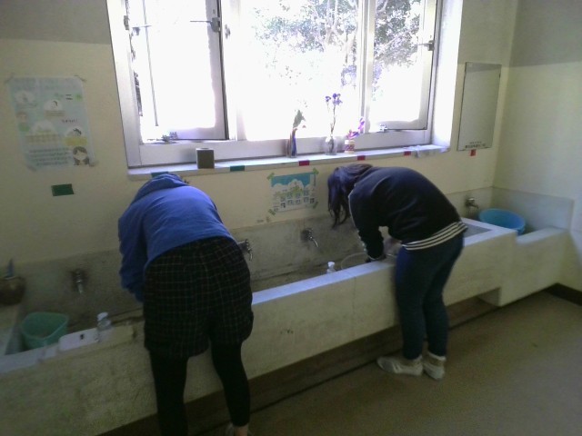 6年生の総合の授業の様子です。みんなで力を合わせて学校中を綺麗にしています。