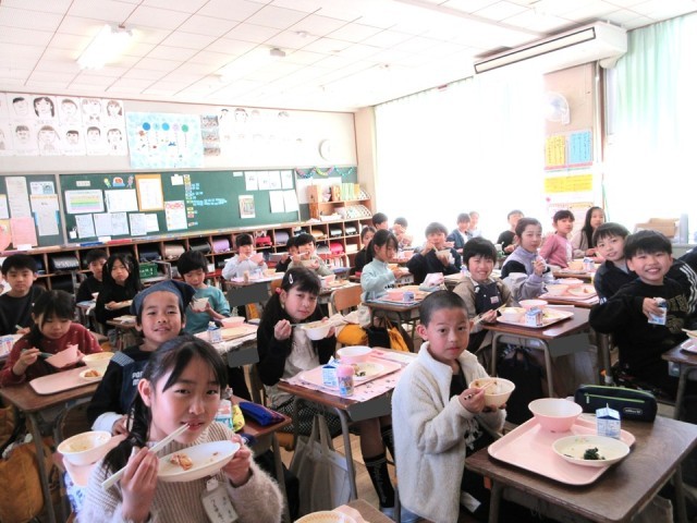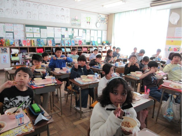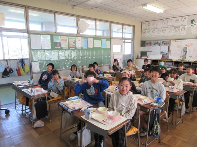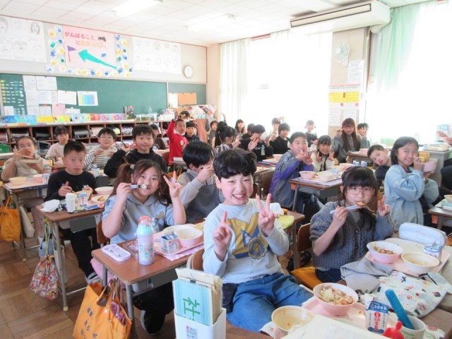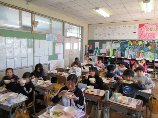 ・ぎょうざと麻婆豆腐がとてもおいしくてごはんが進んだようです。給食のにおいがしてくる環境もうれしいなと思います。3時間目あたりからわくわくしますね。