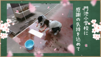 生活委員会の6年生が,児童玄関で